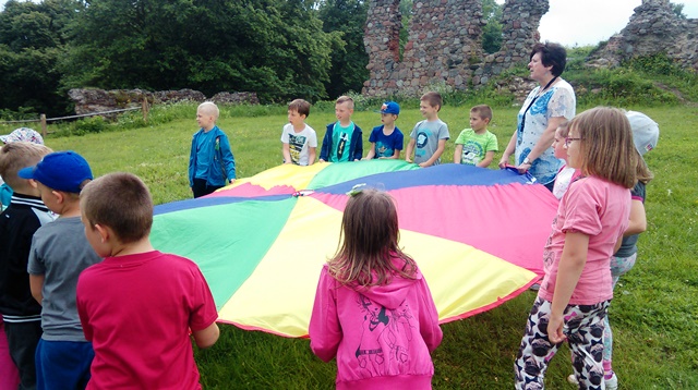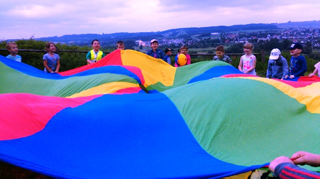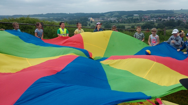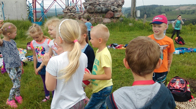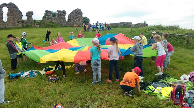 Wszyscy wiedzą, że 1 czerwca świętują dzieci. Dzieci z klas pierwszych na sportowo obchodziły swoje święto. Najpierw na Sali gimnastycznej przeciągały linę, rzucały piłką lekarską, skakały przez skakankę i nosiły na głowie woreczki. Później udały się na górę zamkową i w formie sportowego pikniku bawiły się dalej. Chłopcy chętnie grali w piłkę nożną, a dziewczynki w badmintona. Były też zabawy z chustą animacyjną i inne zabawy terenowe.