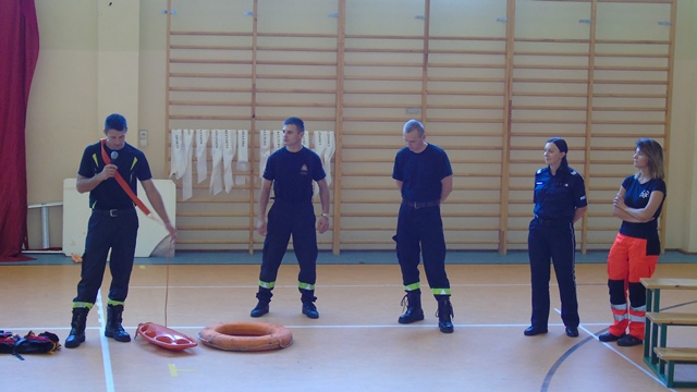 Dnia 23 czerwca 2016 r. w naszej szkole odbył sie apel na temat zagrożeń, z jakimi mogą się spotkać dzieci w czasie letniego wypoczynku. Zaproszonymi gośćmi byli strażacy z Powiatowej Straży Pożarnej w Nowym Mieście Lubawskim, policja z Komendy Powiatowej w Nowym Mieście Lubawskim oraz ratownik medyczny. Celem spotkania było przypomnienie uczniom podstawowych zasad bezpiecznego zachowania się nad wodą, na drodze i uwrażliwienie na różne niebezpieczeństwa. Goście rozmawiali z uczniami na temat, jak bezpiecznie spędzić czas wolny i ustrzec się przed czyhającymi niebezpieczeństwami. Przypomnieli zasady bezpieczeństwa w ruchu drogowym, bezpieczeństwa podczas zabaw na świeżym powietrzu, w podróży, omówił jak zachować się, gdy zaczepi dzieci obca osoba lub gdy się zgubią. przestrzegali również przed korzystaniem z niestrzeżonych kąpielisk, rozpalaniem ognisk, organizowaniem zabaw w niebezpiecznych miejscach. Na koniec goście życzyli wszystkim wesołych i bezpiecznych wakacji.