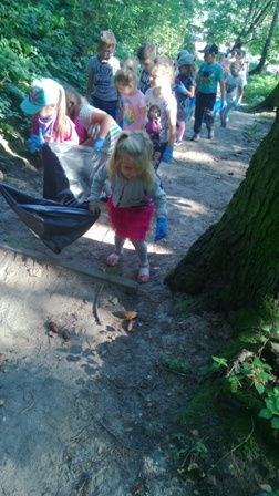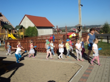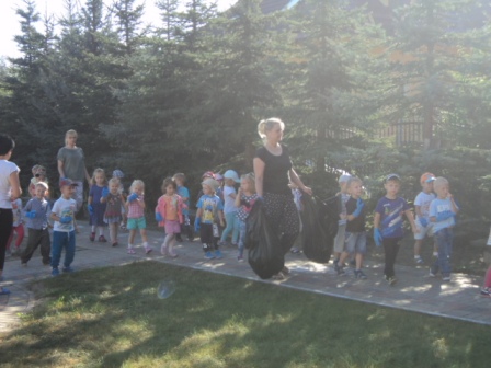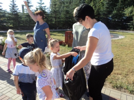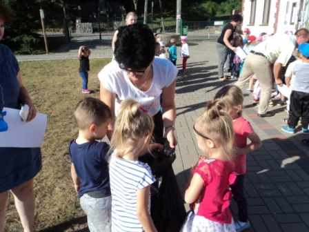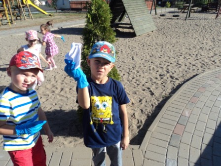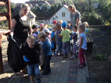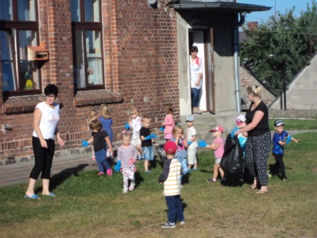 Dzieci były pełne entuzjazmu, prześcigały się w noszeniu worków. „Uzbrojone" w rękawice ochronne i plastikowe worki na śmieci. Mimo, że zmobilizowani naszymi działaniami mieszkańcy dbają o swoje posesje, śmieci niestety nie brakuje. Wyrzucają je przypadkowi przechodnie. Po akcji przedszkolaki zapytane, jakich odpadów było najwięcej, odpowiedziały, że puszek i butelek.Po tak udanej akcji przedszkolaki bawiły się wesoło w ogrodzie przedszkolnym wśród mydlanych baniek i wesołej muzyki.