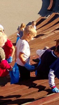Już od wielu lat nasze przedszkole bierze udział w ogólnopolskiej akcji „Sprzątanie świata". W dniu 16 września nasze przedszkolaki w atmosferze zaangażowania uczestniczyły w akcji i oczyszczały z odpadów najbliższą okolicę – teren przedszkolny, górę zamkową