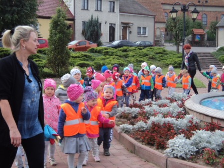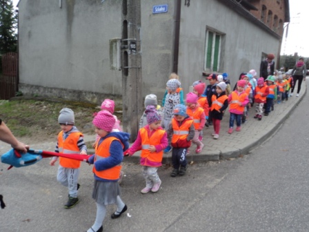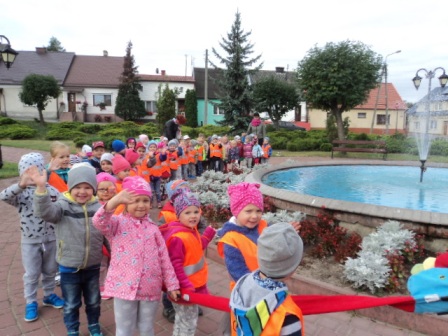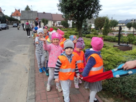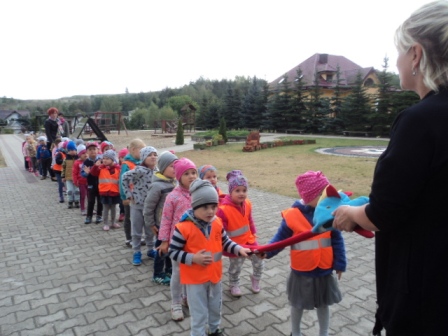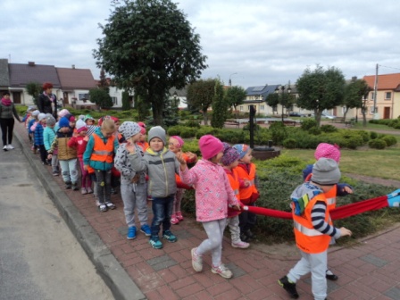 26 września dzieci z grup przedszkolnych wybrały się na spacer ulicami Kurzętnika, ubrane w kamizelki odblaskowe. Już od najmłodszych lat dzieci wprowadzane są w świat wartości dotyczących bezpieczeństwa. Po wprowadzeniu w grupach „Kodeksu Przedszkolaka” nastąpiło praktyczne zastosowanie i utrwalanie zasad bezpiecznej zabawy w sali, ogrodzie przedszkolnym i w czasie spacerów. Maszerując parami dzieci zapoznały się z zasadami poruszania się pieszych po ulicy oraz w jakich miejscach można bezpiecznie przejść na drugą stronę jezdni.