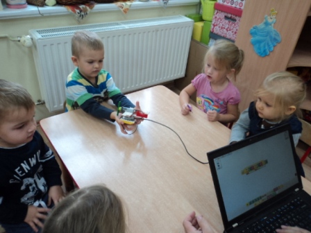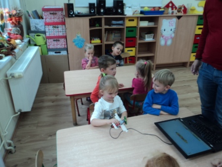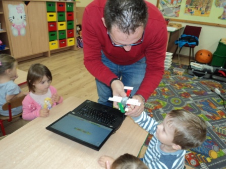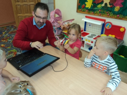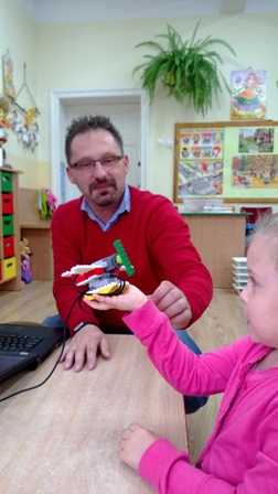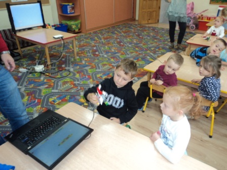 Wszystkie grupy przedszkolne wzięły udział w zajęciach z robotyki, które prowadził przedstawiciel firmy InterRobo – Arkadiusz Dejnarowicz.