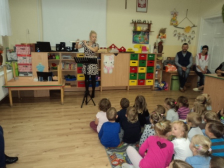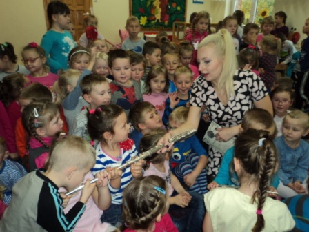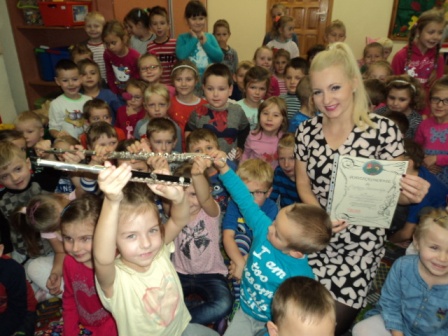 21. 10. w piątek do przedszkola zawitał szczególny gość – pani Martyna Sarnowska ze Szkoły Muzycznej w Nowym Mieście Lub. grająca na flecie poprzecznym i flecie piccolo. Dzieci miały możliwość nie tylko poznać budowę tych instrumentów, ale wysłuchały w wielkim skupieniu „koncertu”, który nas wszystkich zaczarował.