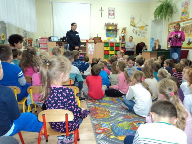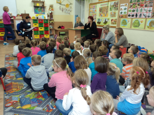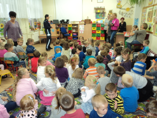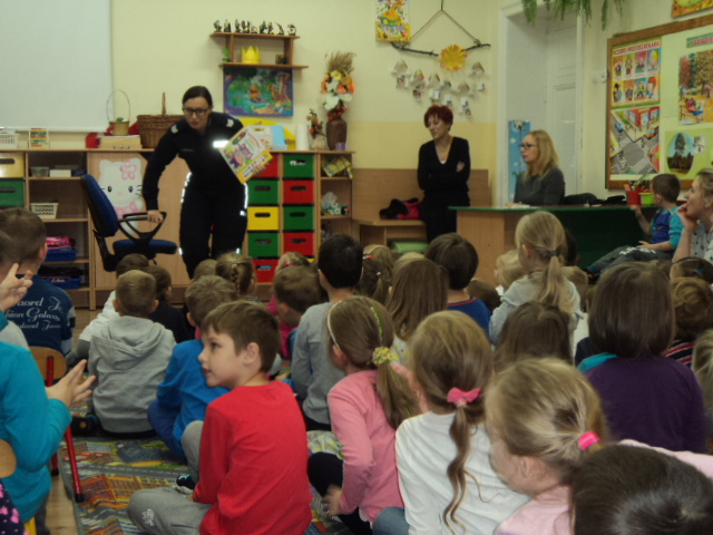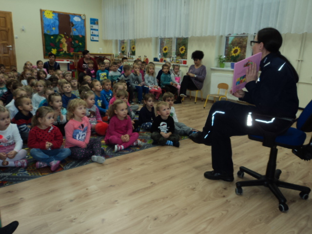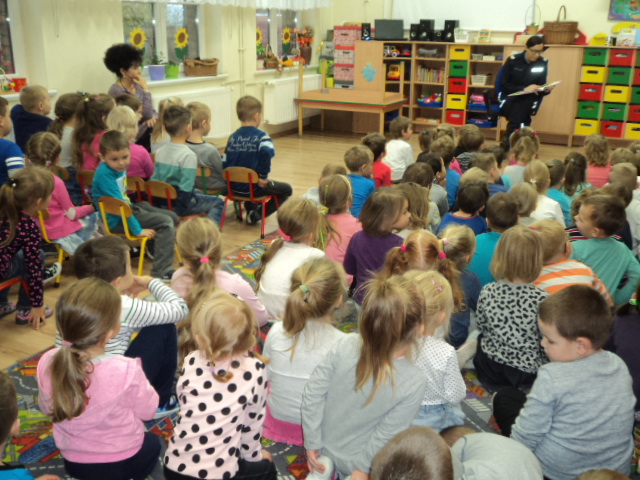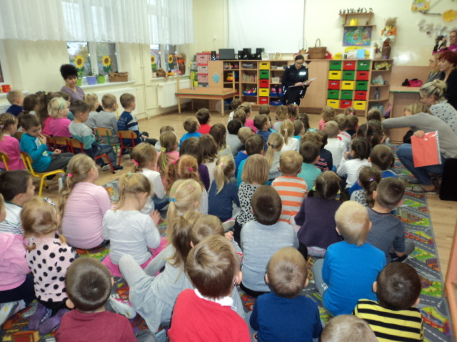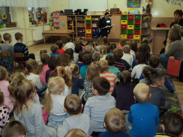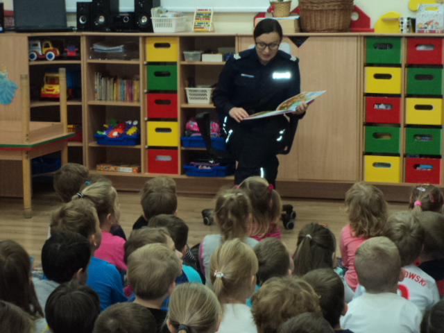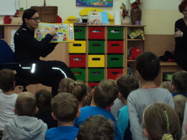 W ramach realizacji jednego z podstawowych kierunków polityki oświatowej państwa w roku szkolnym 2016/2017: ,,Upowszechnianie czytelnictwa, rozwijanie kompetencji czytelniczych wśród dzieci i młodzieży” wzięliśmy udział w corocznym cyklu spotkań organizowanych przez Bibliotekę Gminną ,,Cała Polska Czyta Dzieciom”. Mieliśmy przyjemność wysłuchać bajek czytanych przez Panią Ludmiłę Mroczkowską policjantkę z Komendy Powiatowej Policji w Nowym Mieście Lub. Dzieci miały również okazję utrwalenia zasad bezpiecznego poruszania się po drodze.