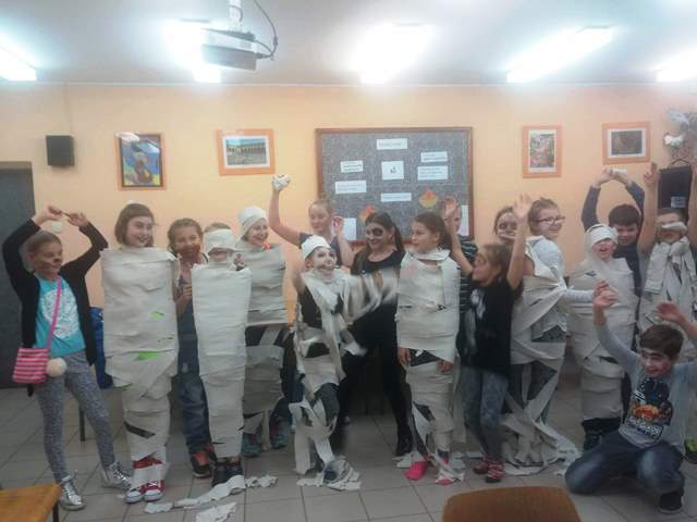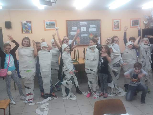 Dnia 27 października w Zespole Szkół im Władysława Jagiełły w Kurzętniku odbyły się warsztaty dotyczące święta Halloween. Uczniowie przygotowali dekoracje i zadbali o odpowiedni nastrój. Latarnie z dyni, rysunki duchów na ścianach budziły grozę. Uczniowie malowali sobie twarze i uczestniczyli w różnych zabawach przygotowanych przez nauczycieli. Wszyscy doskonale się bawili i tańczyli w rytm światowych hitów.