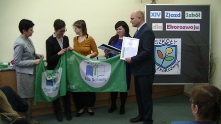 Zdobyliśmy dwa Międzynarodowe Certyfikaty "Zielonej Flagi" otrzymały je: Przedszkole w Zespole Szkół im. Władysława Jagiełły w Kurzętniku (po raz trzeci - otrzymało na trzy lata) i Zespół Szkół im. Władysława Jagiełły w Kurzętniku (po raz drugi - na kolejny rok). W Olsztynie Koordynator ogólnopolskiego programu szkoły dla ekorozwoju wręczyła przedstawicielom naszej szkoły dwie flagi i certyfikaty.