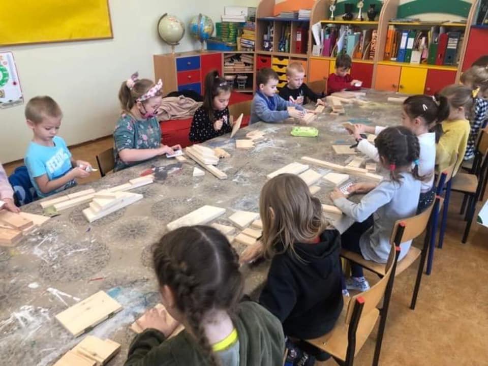 1 grudnia w świetlicy szkolnej odbyły się warsztaty stolarskie zorganizowane przez Zagrodę Edukacyjną Pszczółka w lesie. Dzieci zapoznane zostały z zawodem stolarza oraz samodzielnie wykonały szkatułki, lampiony, skrzynki na klucze oraz choinki, które następnie malowały oraz ozdabiały