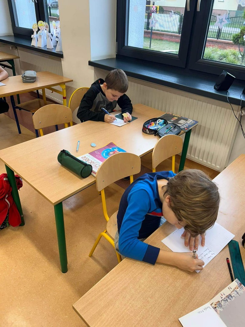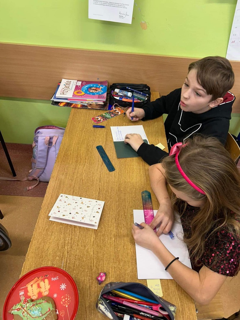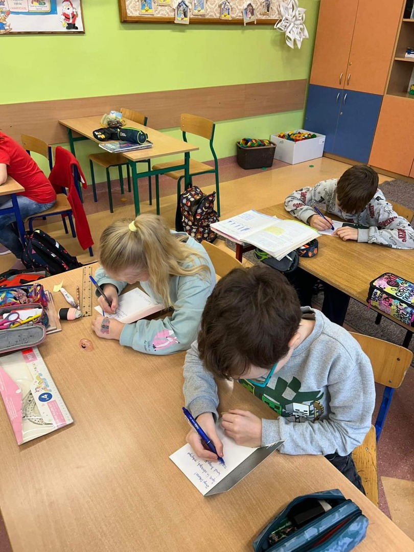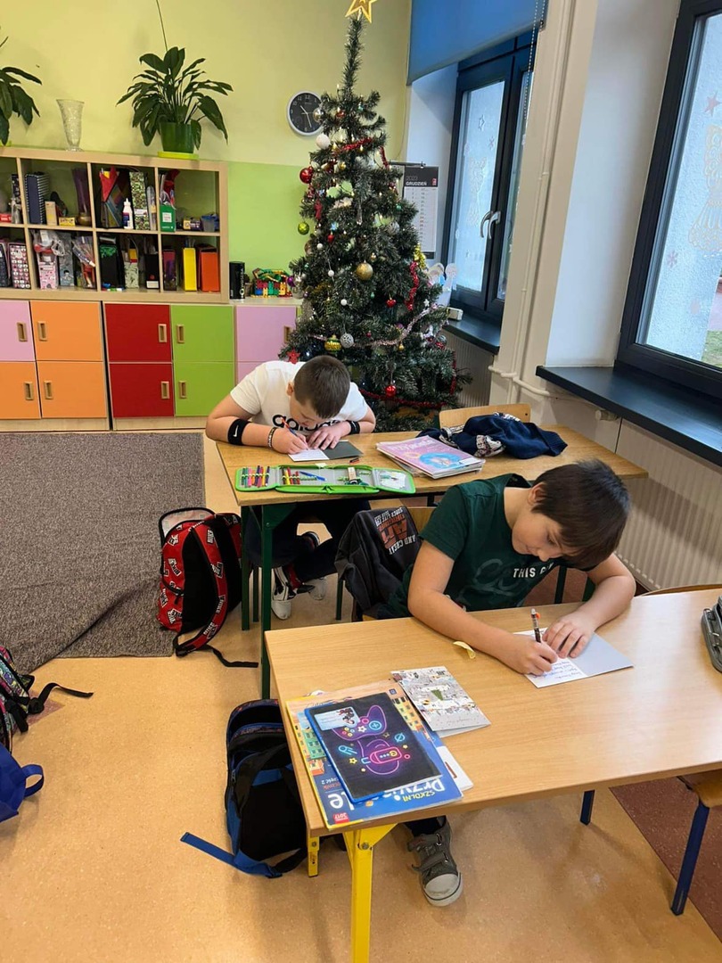 Uczniowie z klasy 3 a napisali życzenia świąteczne dla koleżanek i kolegów ze Szkoły Podstawowej w Mrocznie 👍