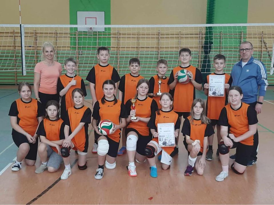 Nasze młode siatkarki jak i siatkarze po wyrównanych pojedynkach „każdy z każdym” i po podliczeniu punktów okazało się, że dziewczęta zostały mistrzyniami powiatu, a chłopcy mistrzami powiatu