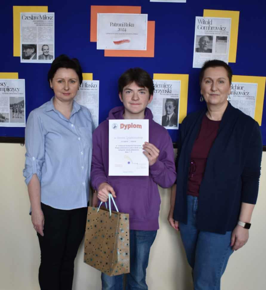 Już po raz kolejny w naszej szkole odbył się Gminny Konkurs Literacki skierowany do uczniów klas 4-8. Co roku tematyka opowiadania jest inna. Tym razem uczniowie zmierzyli się z tematem: „Ważna kobieta / dziewczyna w moim życiu”. Komisja konkursowa po zapoznaniu się z pracami uczestników wyłoniła laureatów: