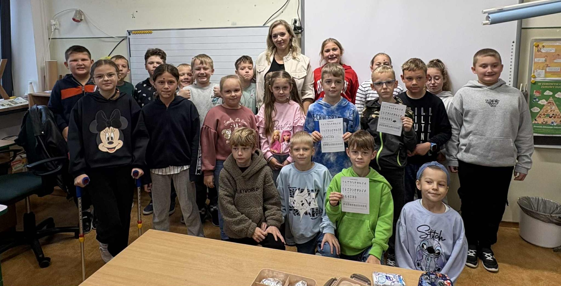 Pani Magda opowiedziała dzieciom o swojej pracy. Dzięki spotkaniu uczniowie dowiedzieli się jak uczą się i radzą sobie osoby niewidome i niesłyszące.