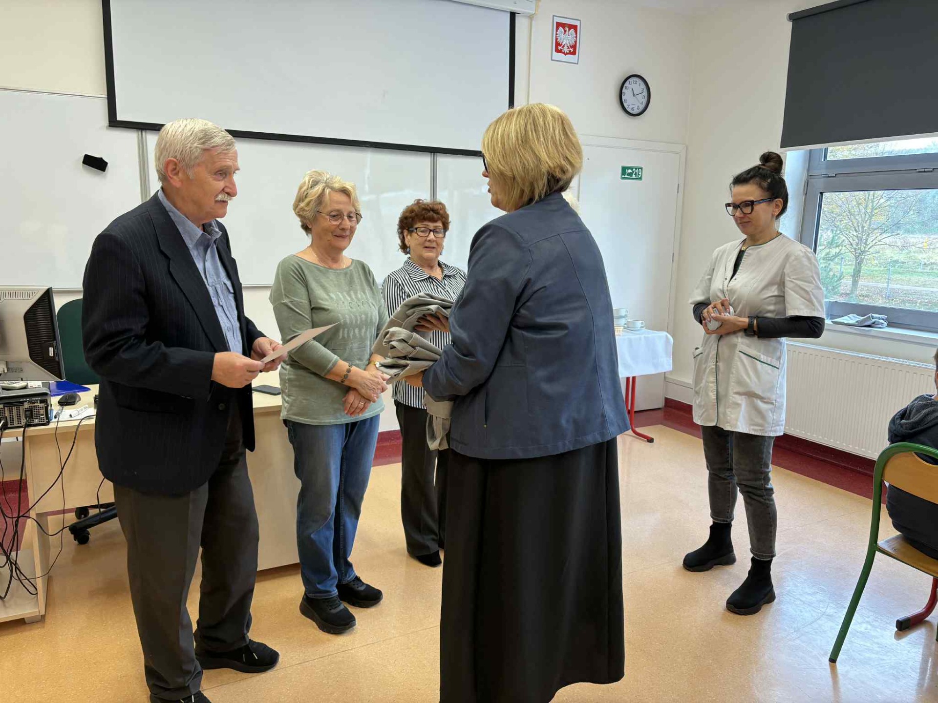 Ostatnim punktem wizyty było spotkanie z członkami Uniwersytetu Trzeciego Wieku, którzy upiekli dla dzieci pyszne rogale. Przy herbatce, soku i słodkościach toczyły się gwarne rozmowy.