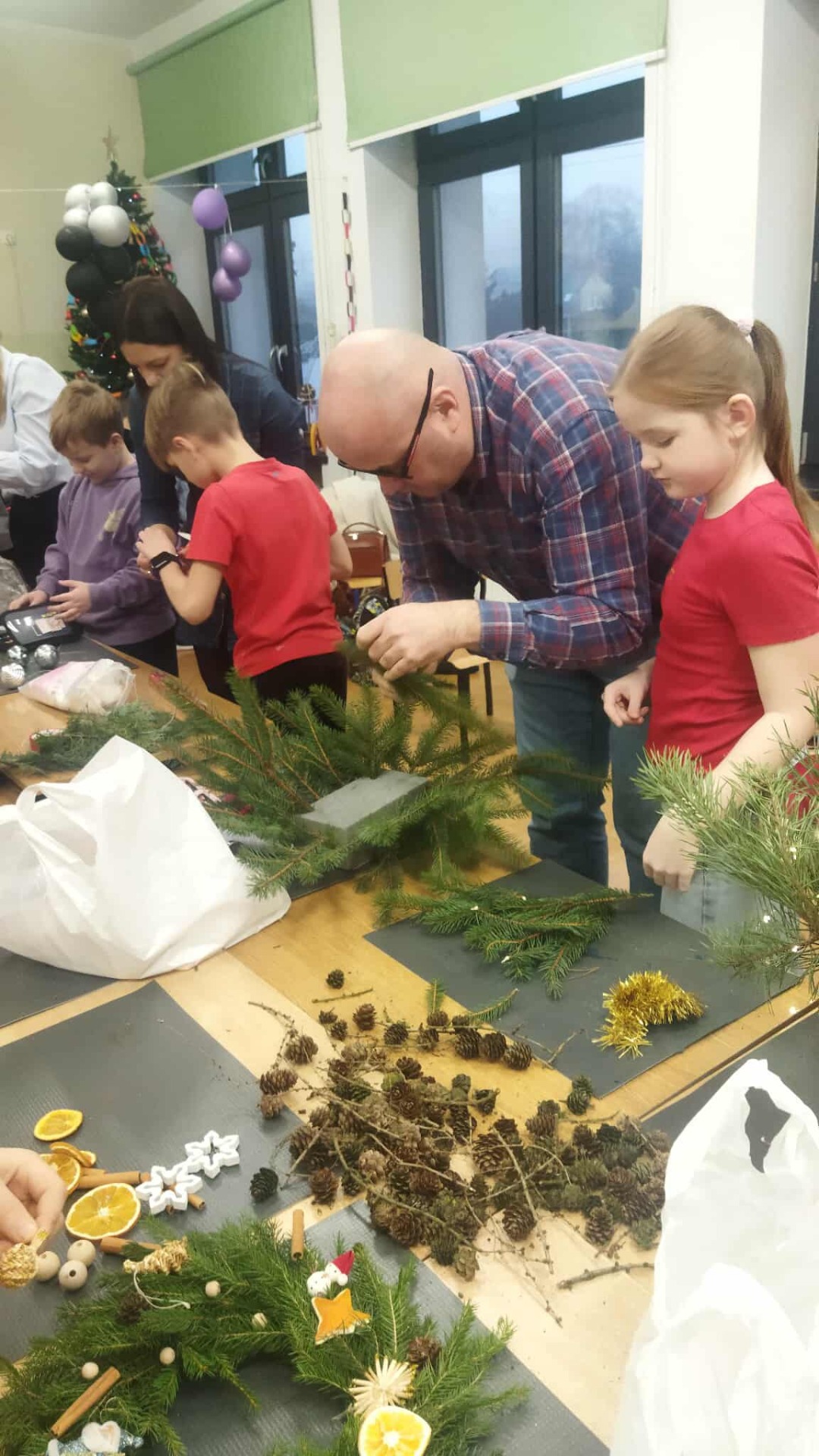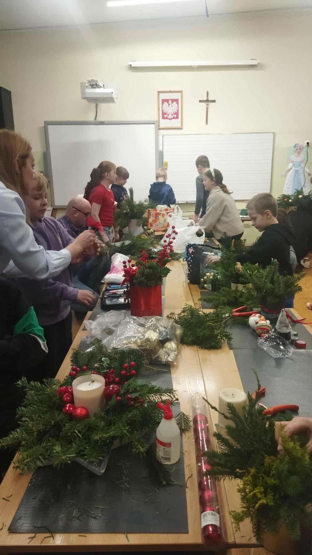 W dniu dzisiejszym w klasie 3a odbyły się zajęcia otwarte z udziałem rodziców. Tematem warsztatów był stroik świąteczny.