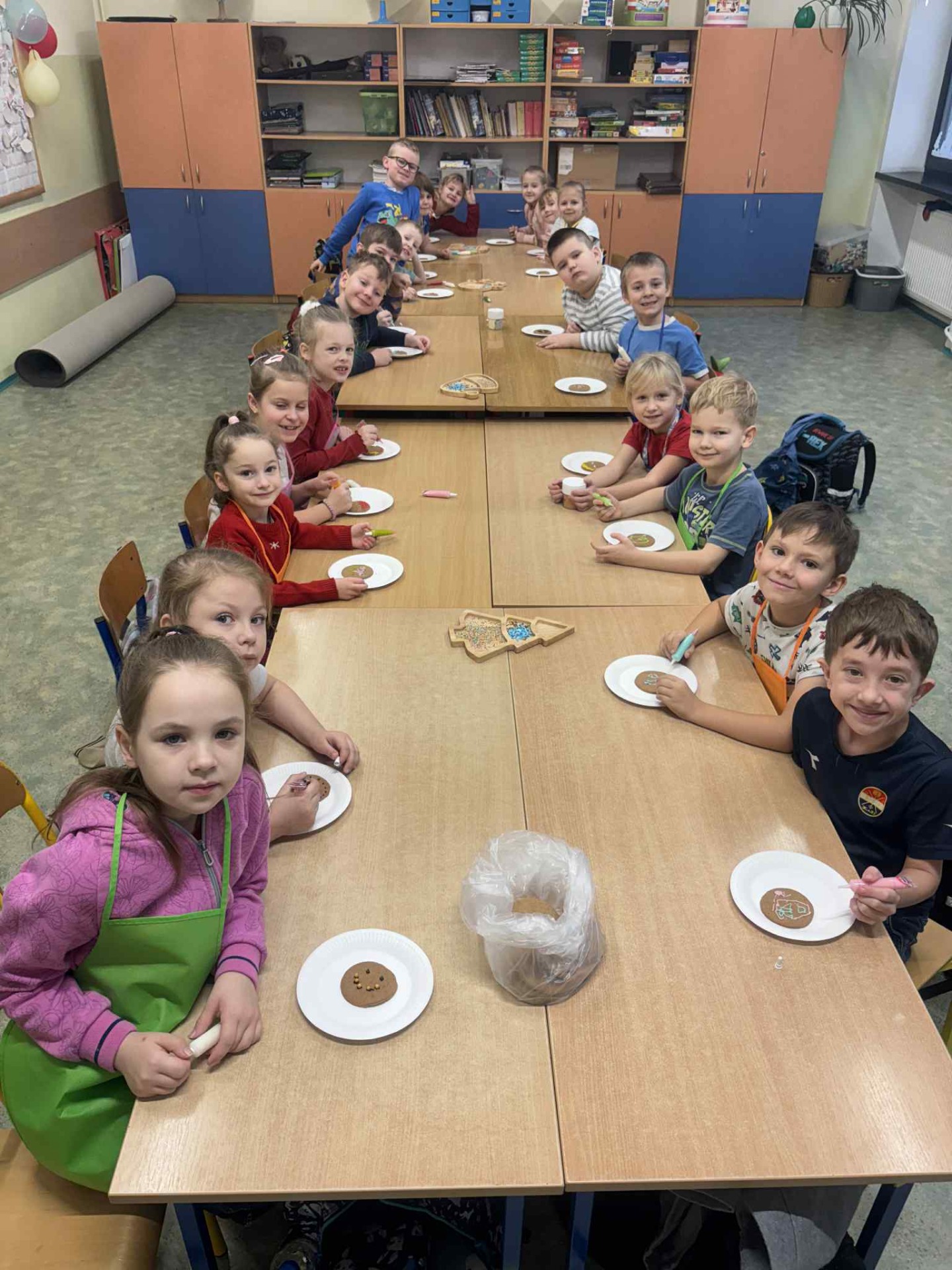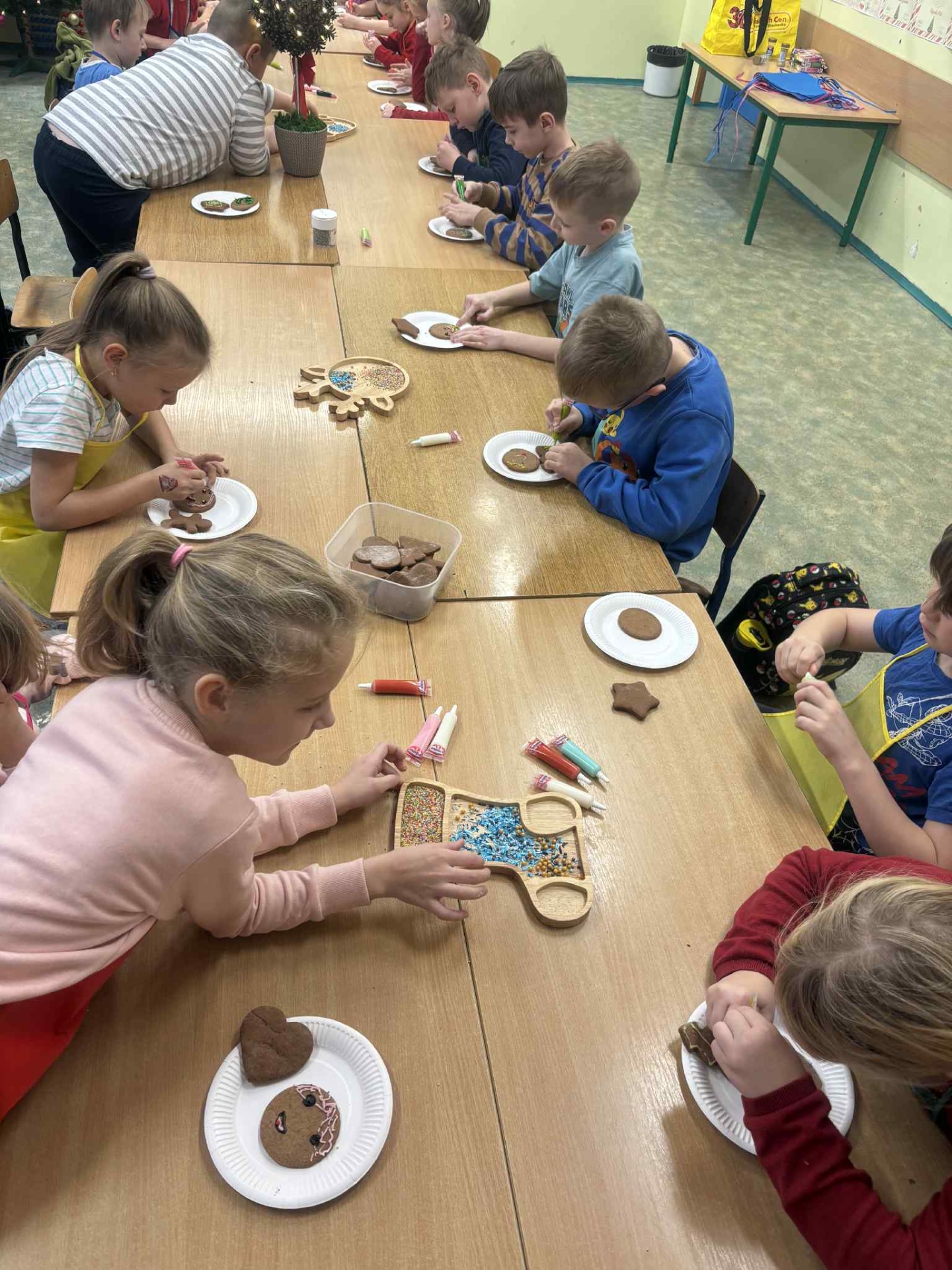 Dziś w klasie 1b czekała na dzieci niespodzianka. Rodzice przygotowali pierniczki i artykuły dekoracyjne, aby uczniowie mogli poczuć atmosferę zbliżających się świąt. Dzieci wykorzystując swoją fantazję i wyobraźnię ozdobiły pierniczki według własnych pomysłów. Po pracy można było swoje dzieło skonsumować, chociaż większość uczniów postanowiła obdarować nimi najbliższych 🎁.