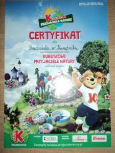 CERTYFIKAT ,,KUBUSIOWI PRZYJACIELE NATURY"